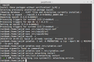 - lalu kita restart squid3nya : dengan cara ketik : #/etc/init.d/squid3 restart